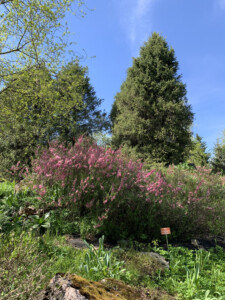 Особенно красочна экспозиция в мае, когда цветут луки, пионы и отрастают зонтичные с ажурной листвой.